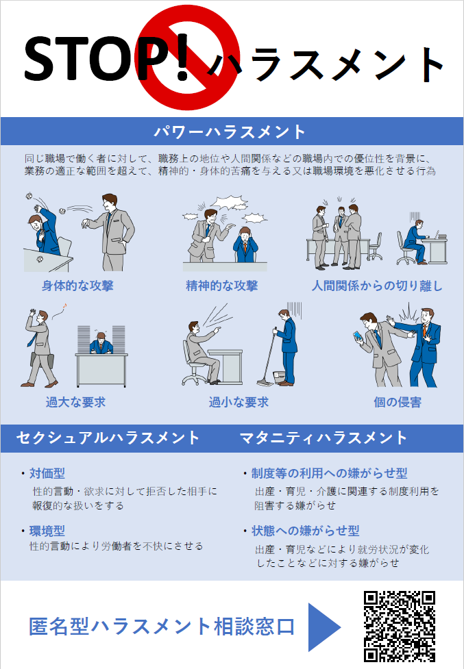大中小企業規模問わずハラスメント対策として、ハラスメント相談窓口の設置が義務化されました。