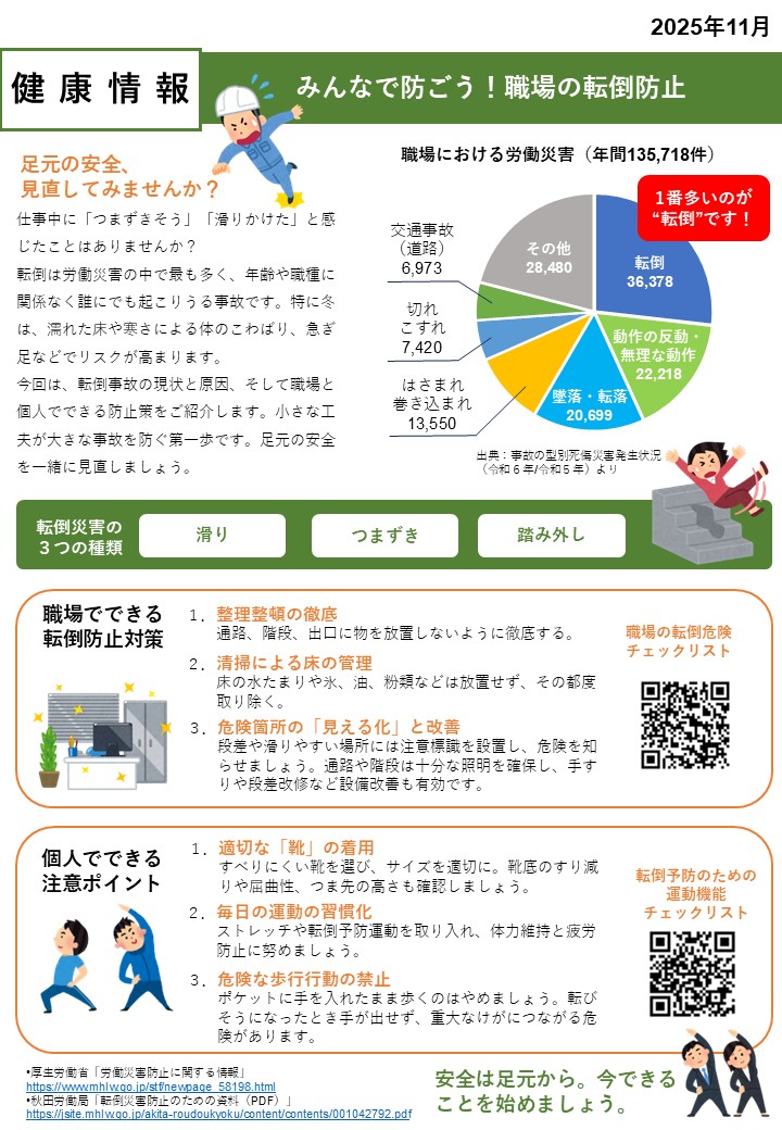 【11月の衛生資料・健康情報】みんなで防ごう!職場の転倒防止