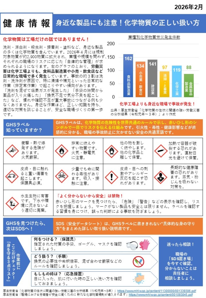 【2月の衛生資料・健康情報】身近な製品にも注意!化学物質の正しい扱い方