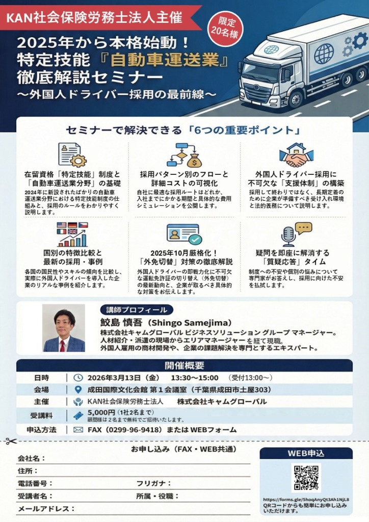外国人ドライバー採用が本格始動!特定技能『自動車運送業』徹底解説セミナーを開催します【3/13㈮】