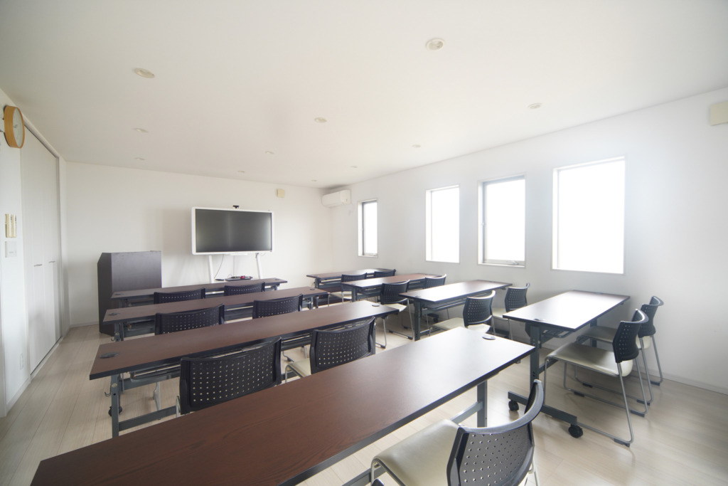 神栖本社の研修室です。社員のスキルアップ向上のため、研修を行います。