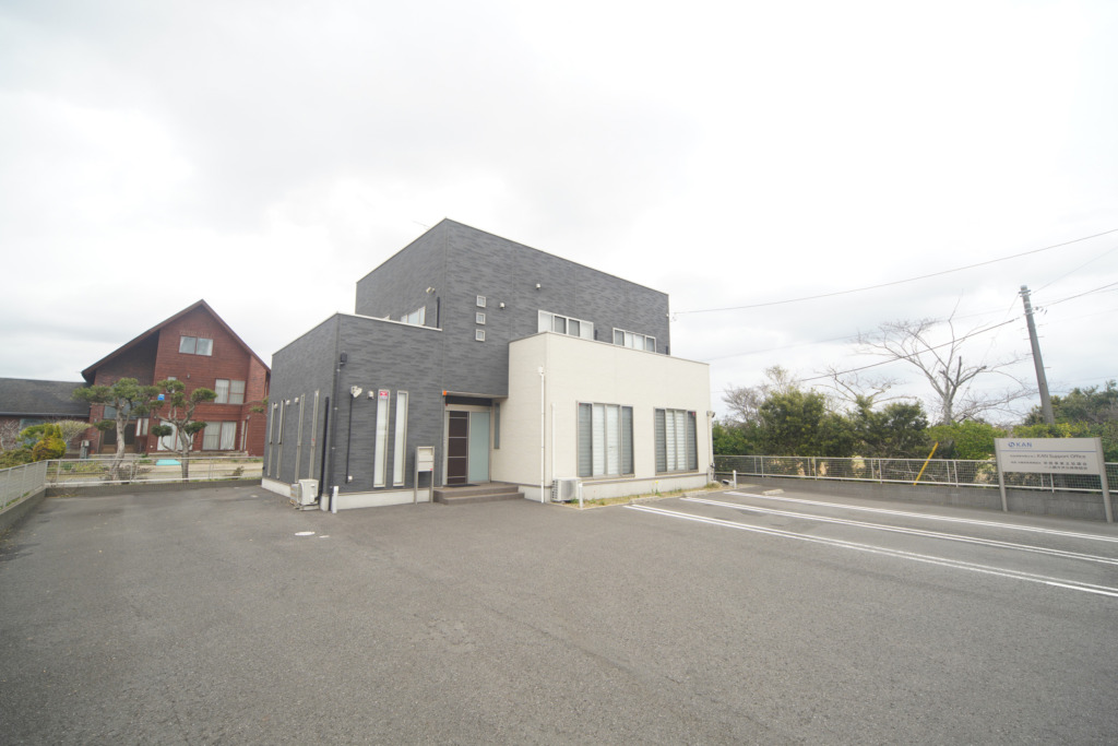 神栖本社の外観です。通勤に便利な立地で、無料駐車場があります。