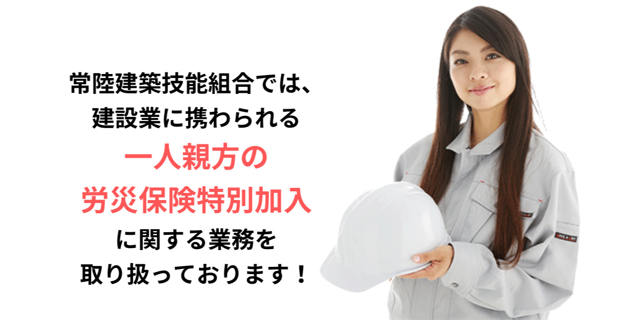 一人親方労災保険に特別加入をするためには、一人親方の団体を通じて申し込みをする必要があります。常陸建築技能組合では、建設業に携わられる一人親方の労災保険特別加入に関する以下の業務を取り扱っております。